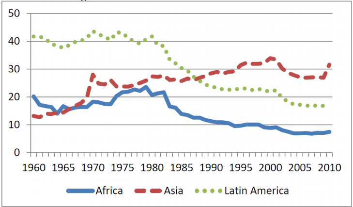 Development is not just about income. It also involves a lot of intangible socio-political variables. Going back to the graph, a key difference in 1960 between Ghana, India, and South Korea was the degree of coherent stateness. On this measure South Korea was way ahead of its developing country peers.