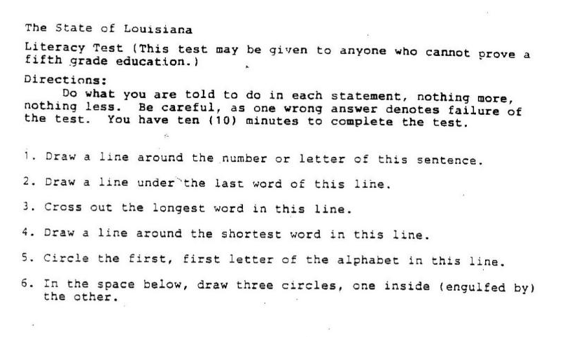 In related news, following the US Supreme Court decision on the Voting Rights Act Rebecca Onion at Slate posted a nice piece on the original literacy tests in Louisiana that were designed to keep minorities away from the polling stations. Interesting stuff. I wonder what the average score would be if the tests covered all voting age Americans…