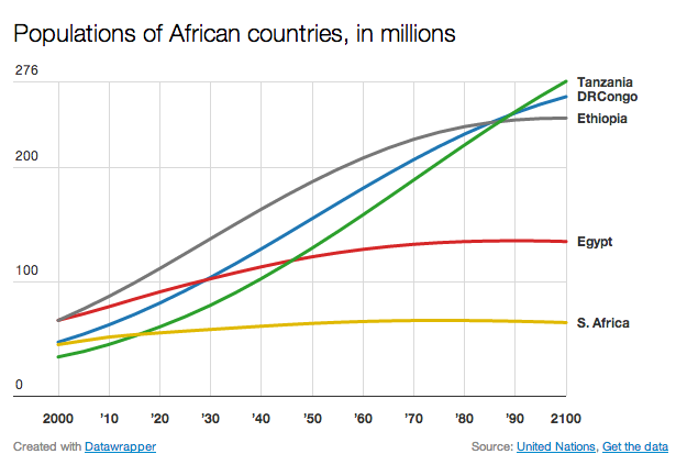 Also, western Tanzania is a lesson on how hard it is to achieve economic development in the context of a sparsely populated country. Such situations make it impossible to reach everyone with the grid and water pipes. Either the government has to wait for demographics to work its magic (again, see figure above – and be sure to check out this story on the Africa-driven demographic future of the world) or provide smart incentives to accelerate the process of urbanization.