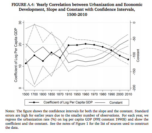 • The problem of urbanization without growth. The (developing) world is urbanizing fast, but will this trend result in an unambiguous improvement in human welfare? This post reminds us that throughout history urbanization has not always gone hand in hand with economic growth (See also here).